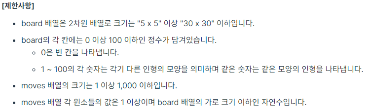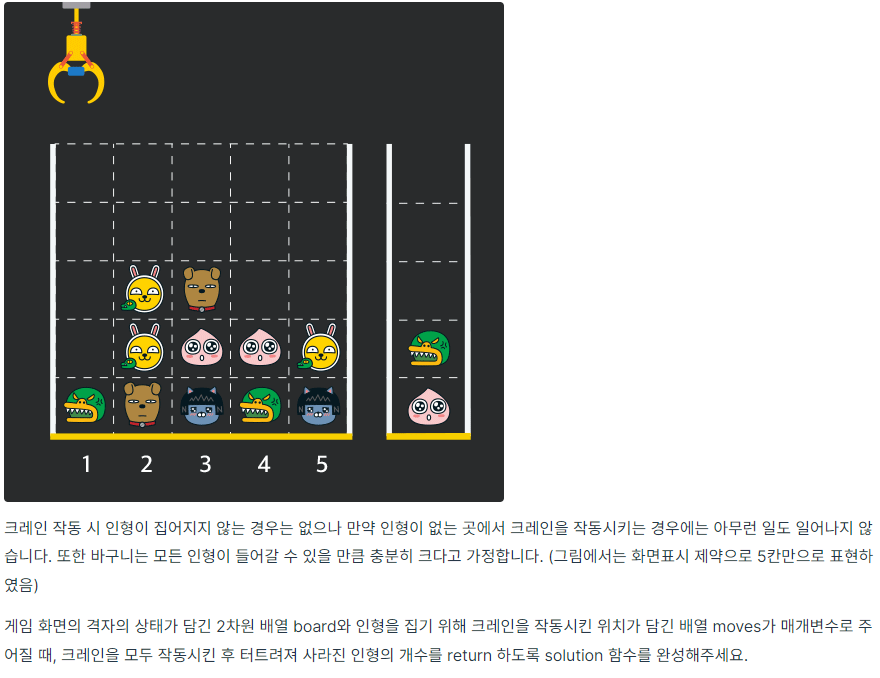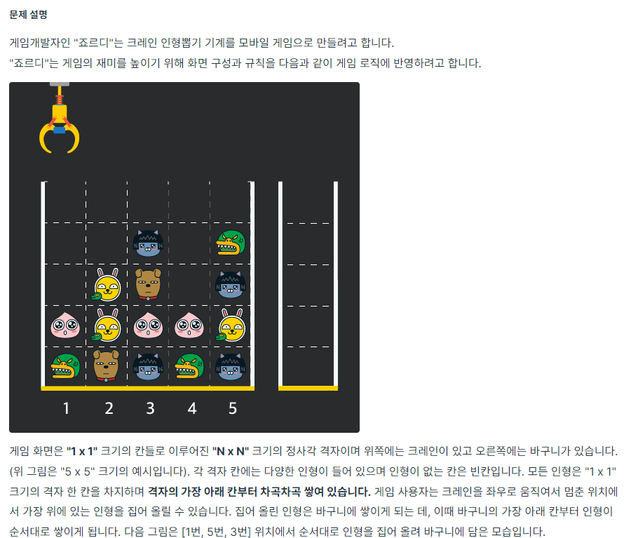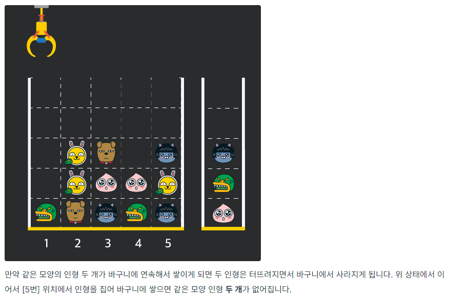 Programmers 알고리즘 문제 풀이, Level1_크레인 인형뽑기