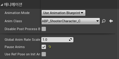 2. "Animation" 항목에서 "Animation Mode"를 "Use Animation Blueprint" 선택