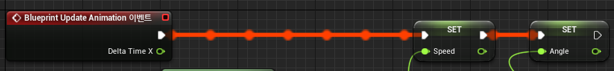 5. Update 이벤트의 실행 핀을 Speed와 Angle에 연결합니다.