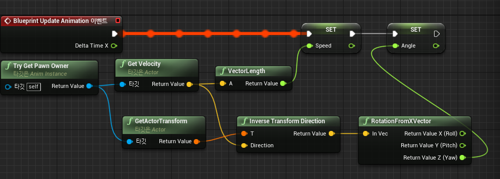 이 이벤트는 매 프레임마다 실행되며, Animation Blueprint에서 활용하고자 하는 변수들을 계산하거나 업데이트하는 데 사용됩니다.