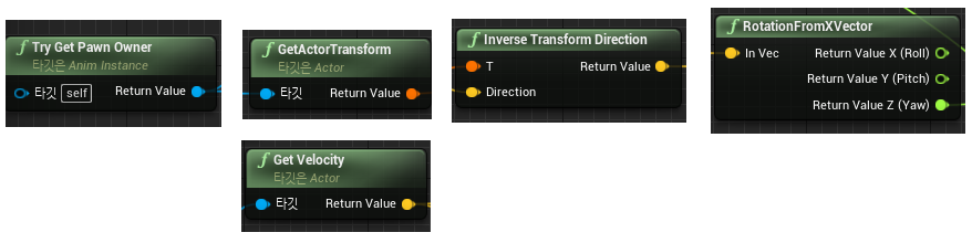 "Animation Blueprint"의 "Event"는 첫 두 개의 노드를 제공합니다.