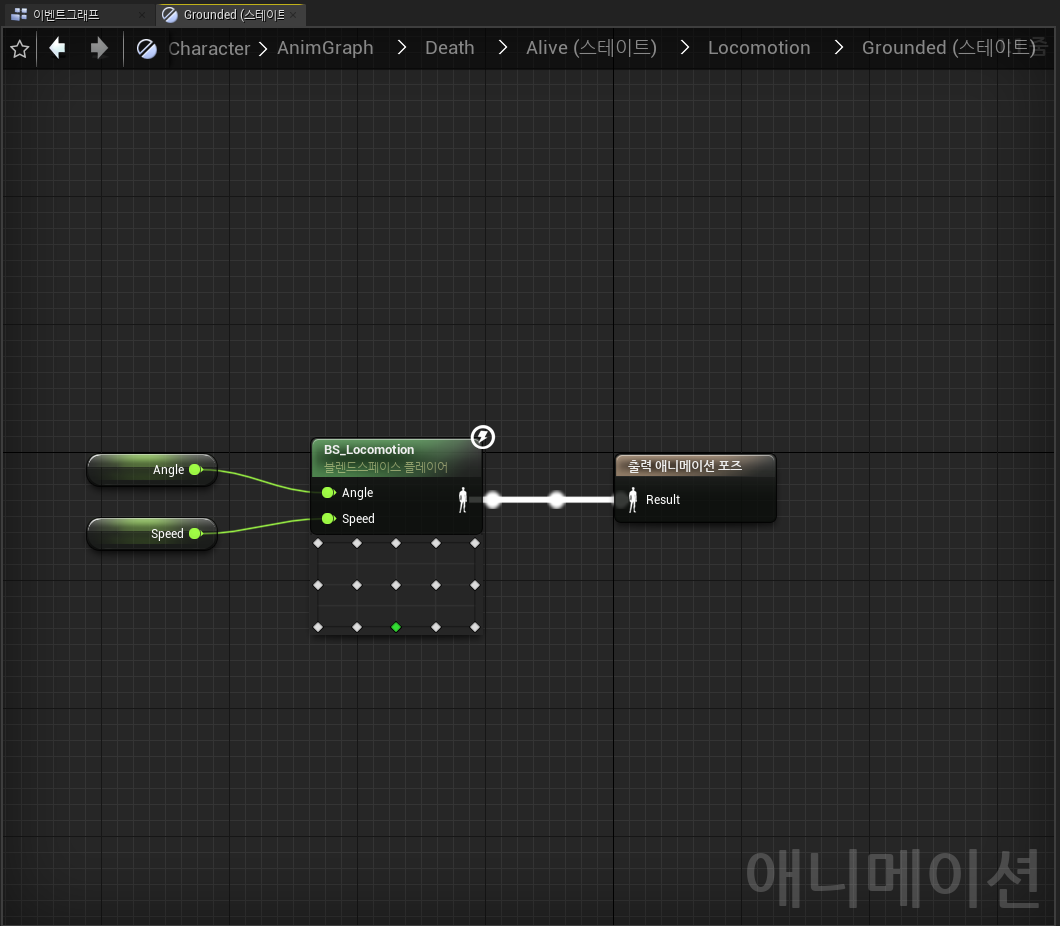 1. Animation Blueprint 내부 "Anim Graph"에 "Animation Blend Space" 생성