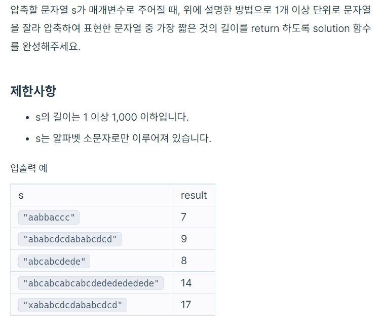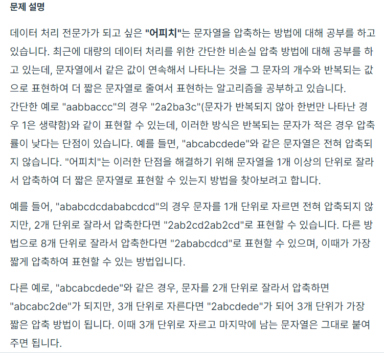 Programmers 알고리즘 문제 풀이, Level2_문자열 압축