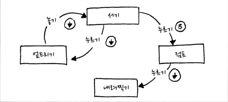 2. 한 번에 한 가지 "상태"만 허용됩니다. 예를 들면, 서 있는 동시에 점프할 수 없습니다!