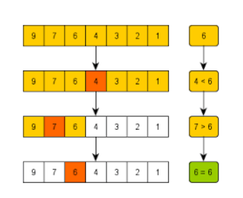 - [정의] : 정렬된 원소 목록을 반으로 나누어 찾고자 하는 원소와 중심이 되는 원소를 비교하고, 작다면 왼쪽으로 크다면 오른쪽으로 중심 원소를 옮겨서 반복적으로 비교 작업을 수행합니다. 시간 복잡도는 O(log n)으로 선형 탐색보다 뛰어난 성능을 보여줍니다! 다만 몇 가지 단점들이 물론 존재합니다!