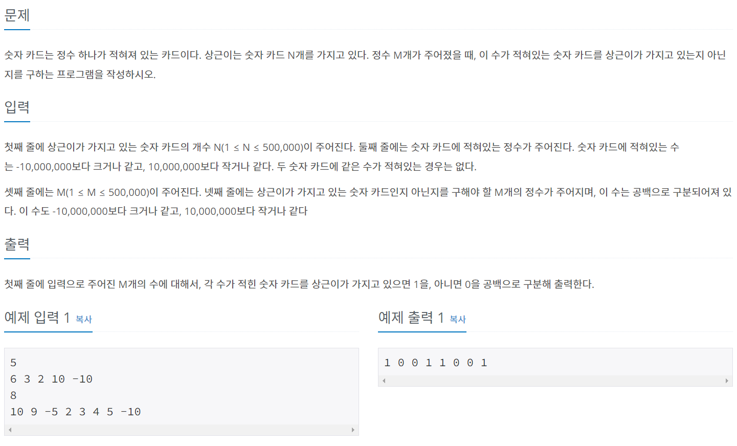 BOJ 알고리즘 문제 풀이, 10815_숫자 카드
