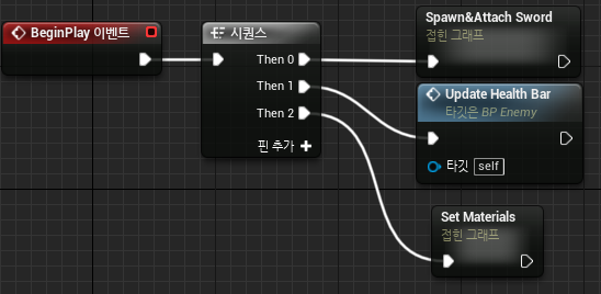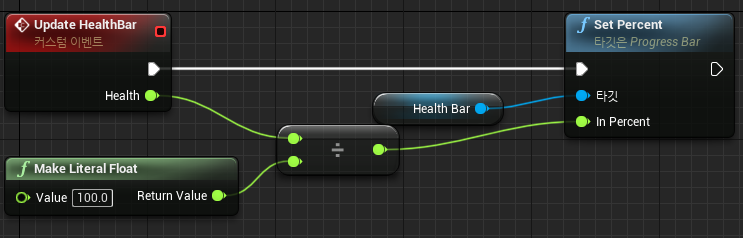 4. Begin Play 실행 핀에 Update Health Bar 함수 연결