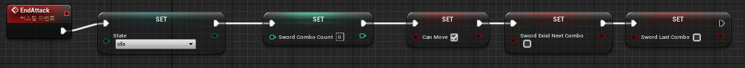 다음 Combo Attack이 유효하지 않을 경우, 기존의 End Attack의 구현처럼 캐릭터 상태 변수 변경 등을 진행합니다.