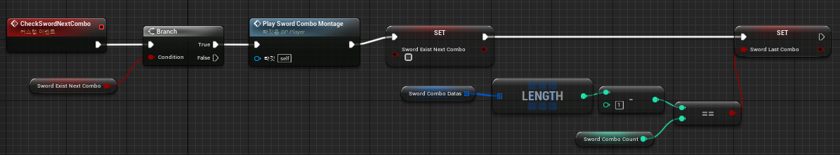 현재 재생되고 있는 콤보 애님 몽타주 중 마지막 애님 몽타주가 재생되고 있다면, Sword Last Combo 변수를 True로 만듭니다!