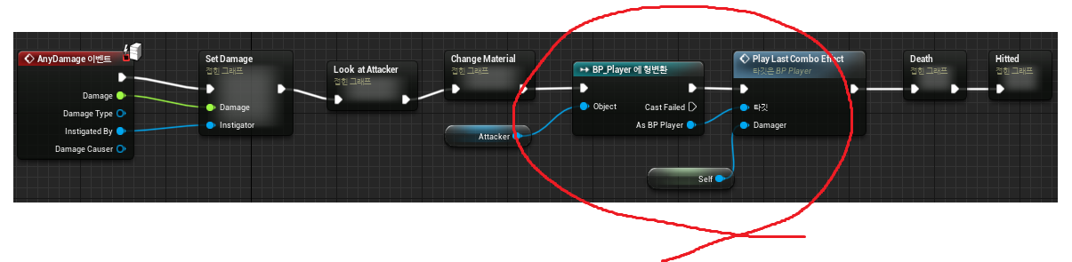 따라서, Instigator 정보를 통해 가져온 "Play Last Combo Effect"를 호출하는 과정에서 "Enemy", 즉 피격당할 Actor를 같이 넘겨줍니다!