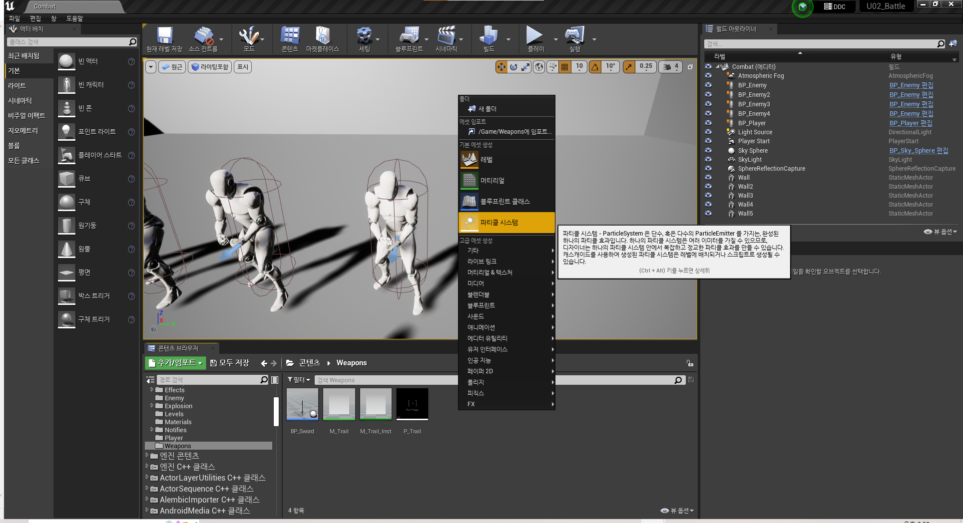 [Unreal_블루프린트]#17_Particle System, Trailer, 공격 이펙트