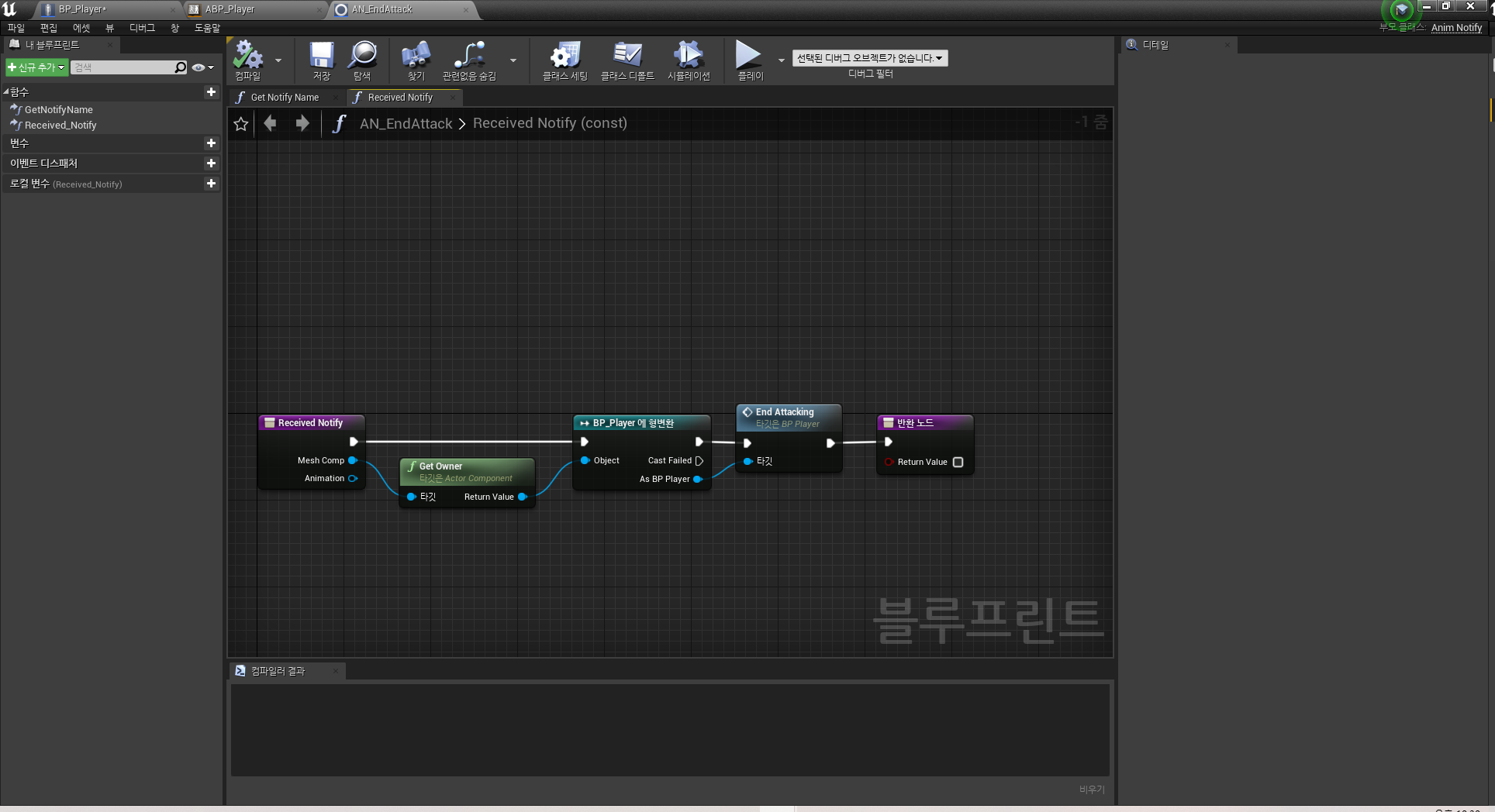 1. BP_Player의 "EndAttack" 호출을 "EndAttacking"으로 변경