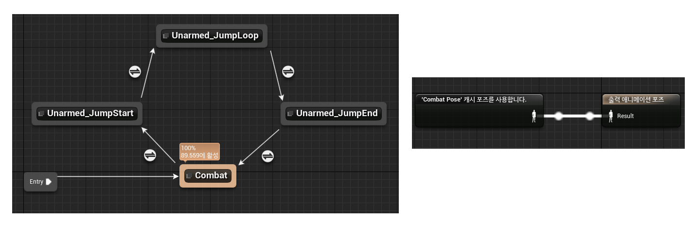 2. 기존의 Jump 상태 기계를 캐쉬 포즈와 연결합니다.