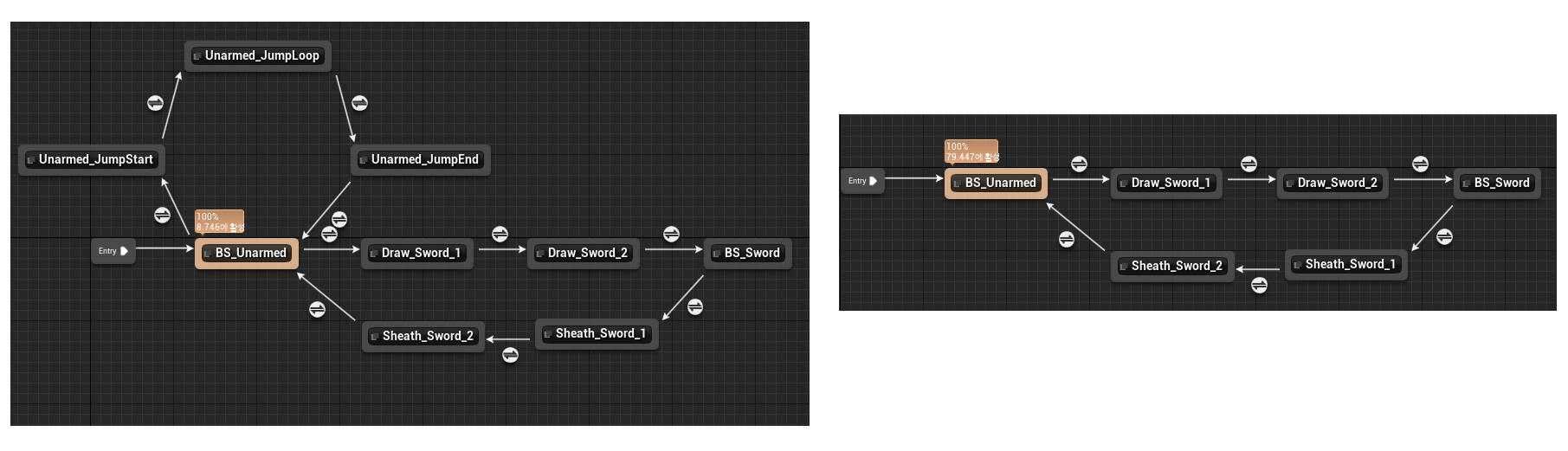 1. 기존의 Unarmed <-> Sword 상태 기계를 캐쉬 포즈로 저장합니다.