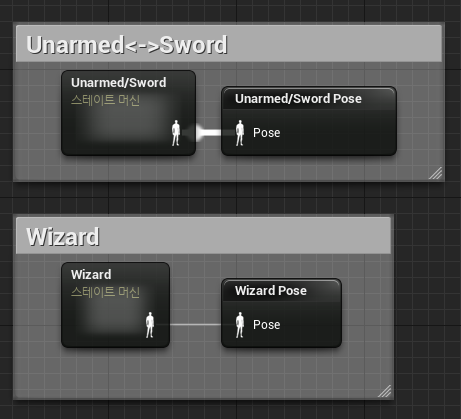 1. Unarmed<->Sword + Wizard 캐시 포즈를 기본 상태로 설정합니다.