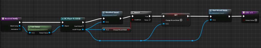 4. Change Wizard Mode가 "True"라면 Sheathed Sword + Start Wizard Mode를 함께 호출합니다!