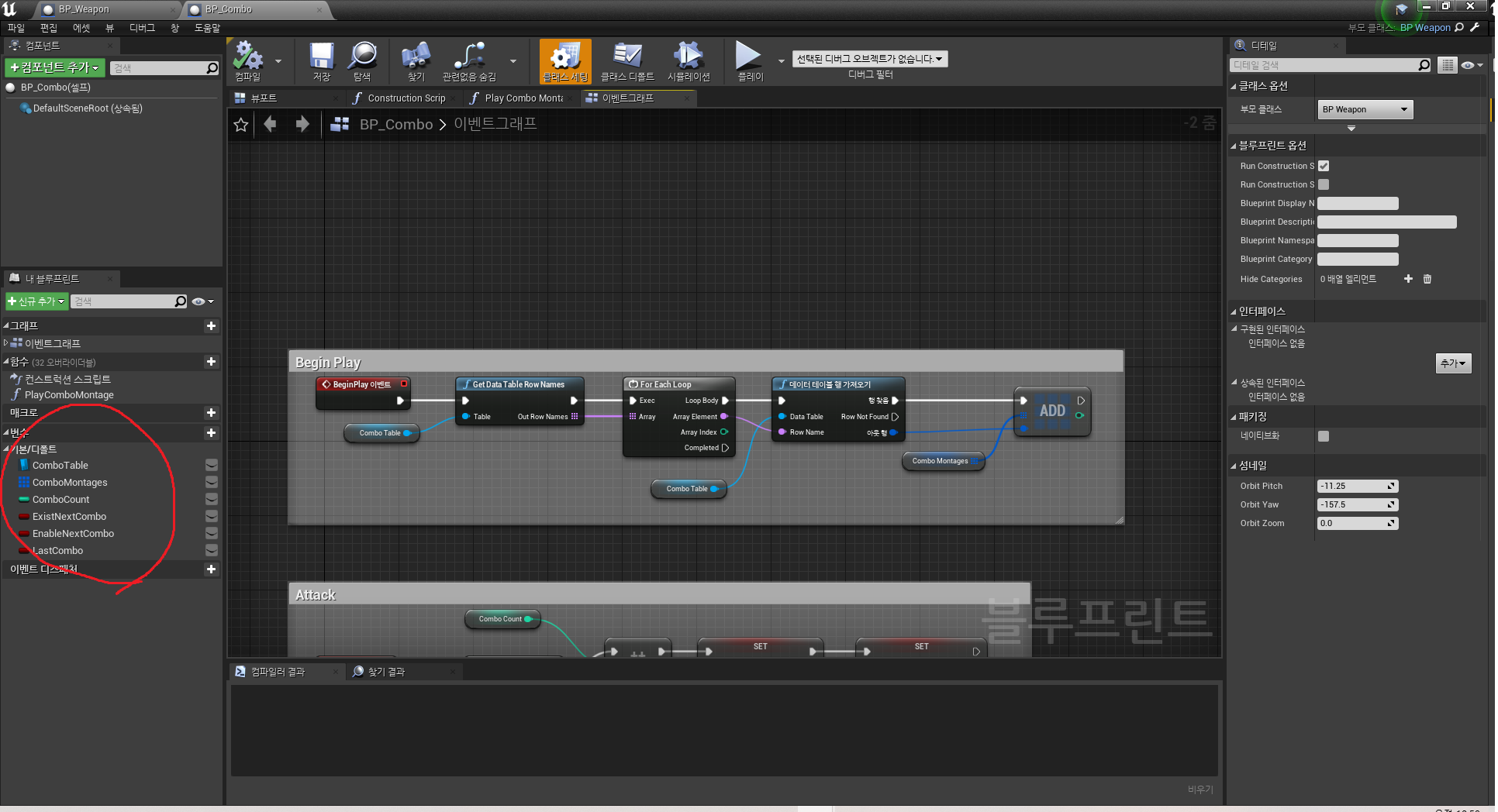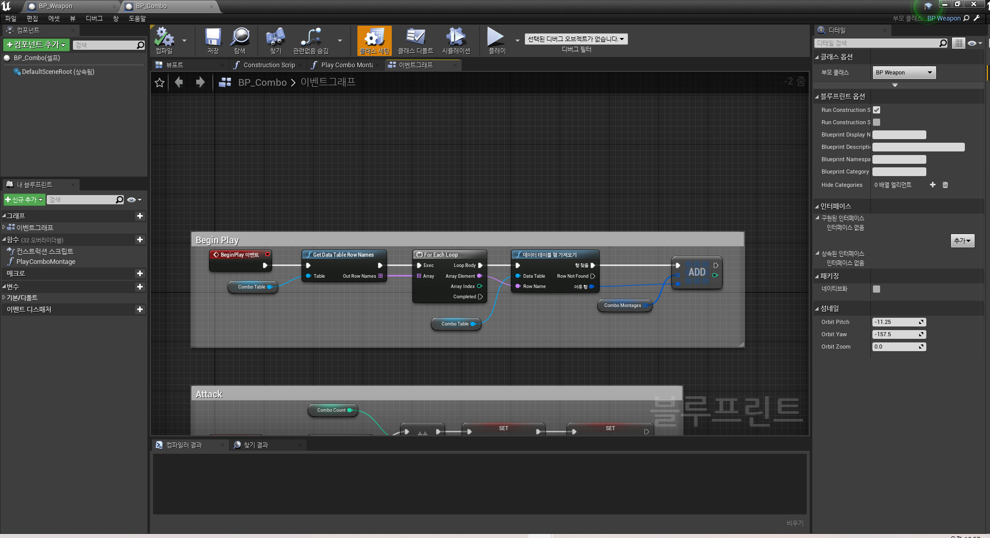 BP_Combo 블루프린트 에디터 창