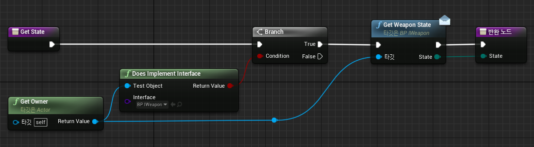 무기의 소유자, 즉 BP_Player를 호출하여 "인터페이스 함수"의 오버라이딩 여부를 확인합니다.