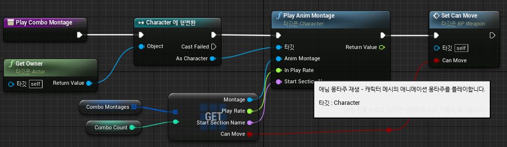 BP_Combo의 Play Combo Montage 함수 화면