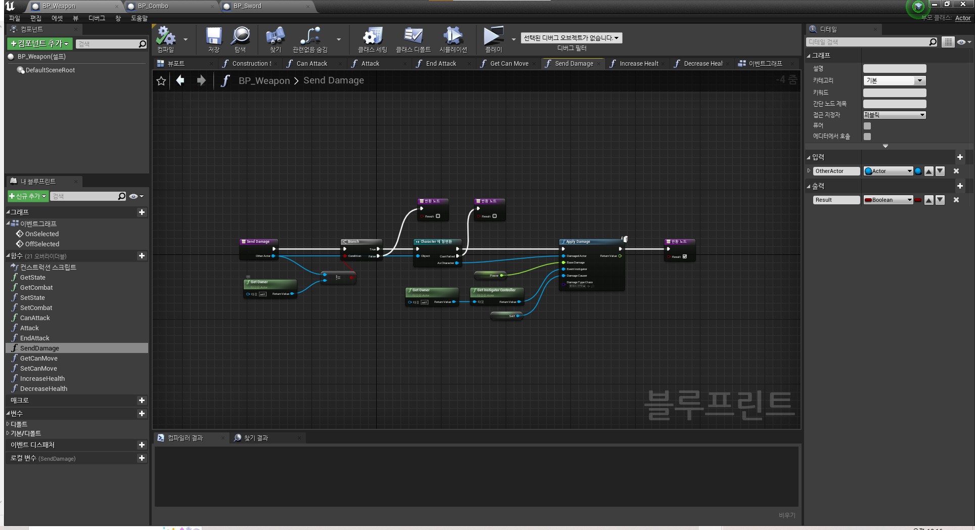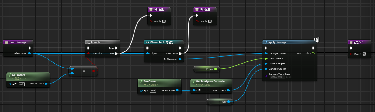 BP_Weapon의 CanAttack 함수 구현부BP_Weapon의 SendDamage(Apply Damage) 함수 구현부