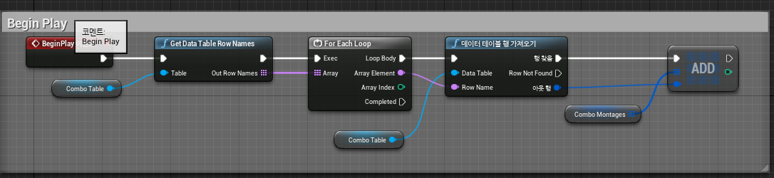 BP_Player의 Load Combo Table 이벤트 그룹 -> BP_Combo의 BeginPlay 이벤트로 이전