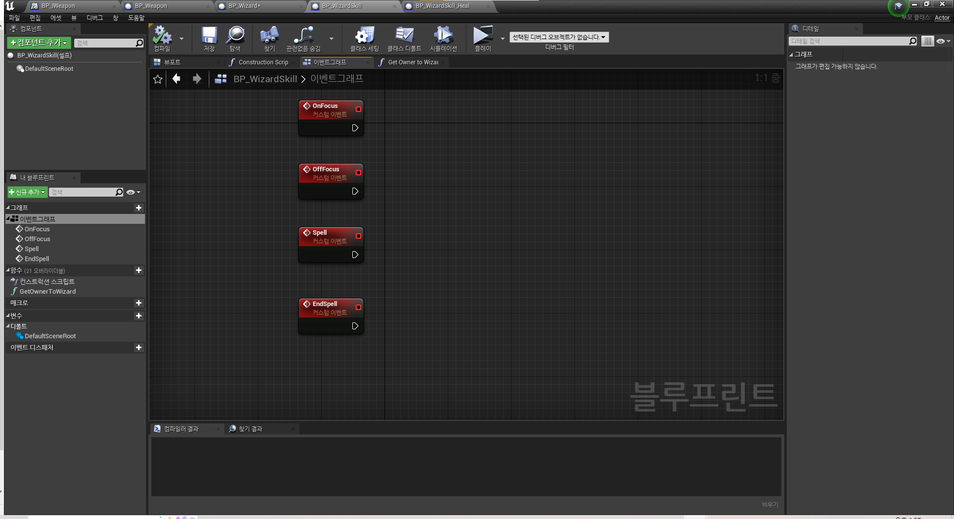 "Spell"과 "EndSpell" 커스텀 이벤트 또한 하위 클래스들에서 상세 구현을 진행할 예정입니다.