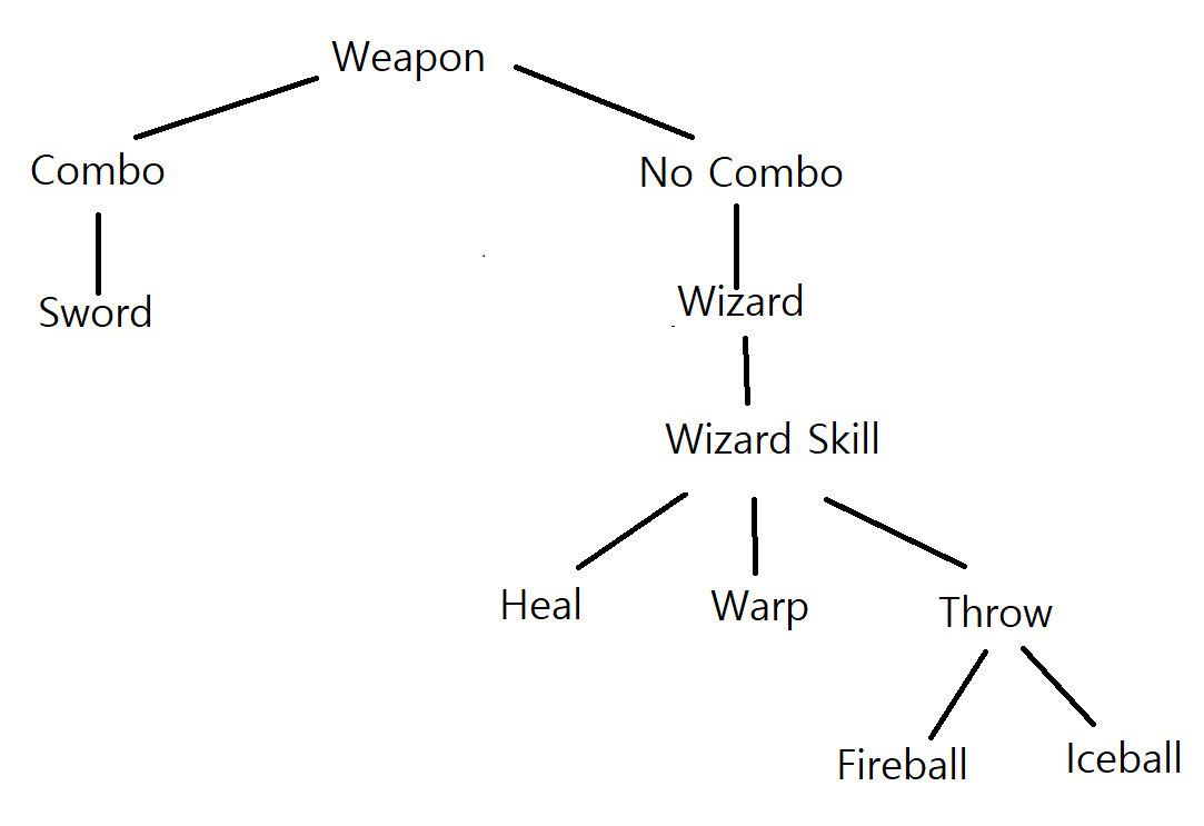 Wizard 공격 모드가 갖는 세 가지 스킬을 변수로 생성합니다. 각각 "BP_WizardSkill", "BP_WizardSkill_Heal", "BP_WizardSkill_Warp", 그리고 "BP_WizardSkill_Throw"를 참조합니다.