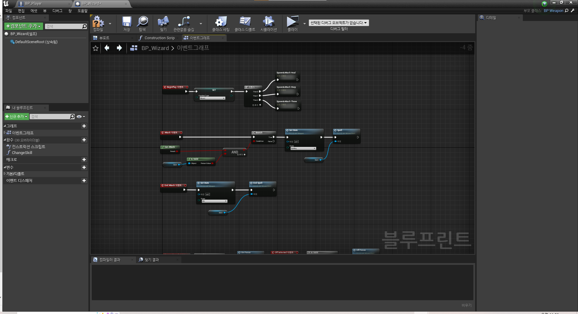 BP_Wizard 내부 "ChangeSkill" 함수 구현 화면