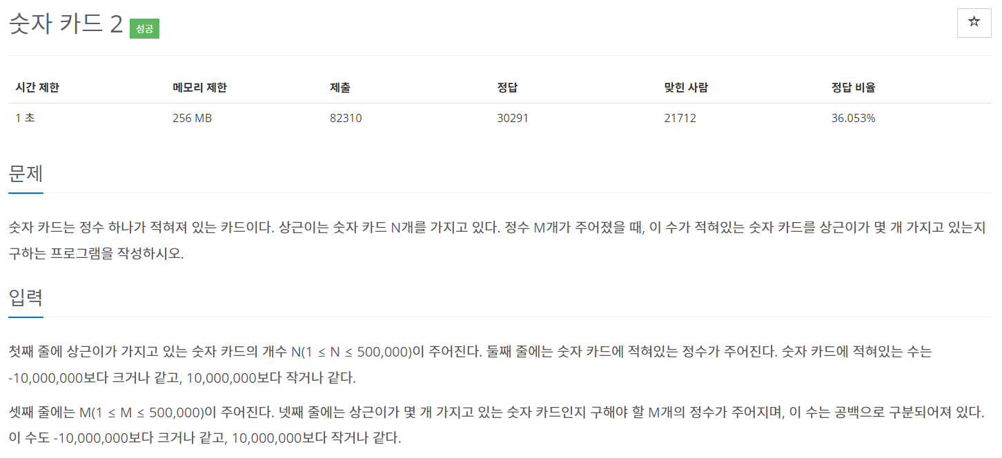 BOJ 알고리즘 문제 풀이, 10816_숫자 카드2
