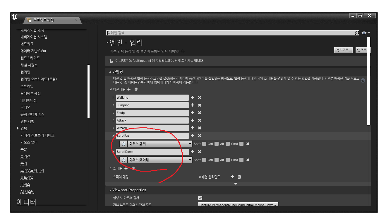 BP_Player의 이벤트 그래프 중 Scroll Up + Scroll Down 액션 이벤트 구현