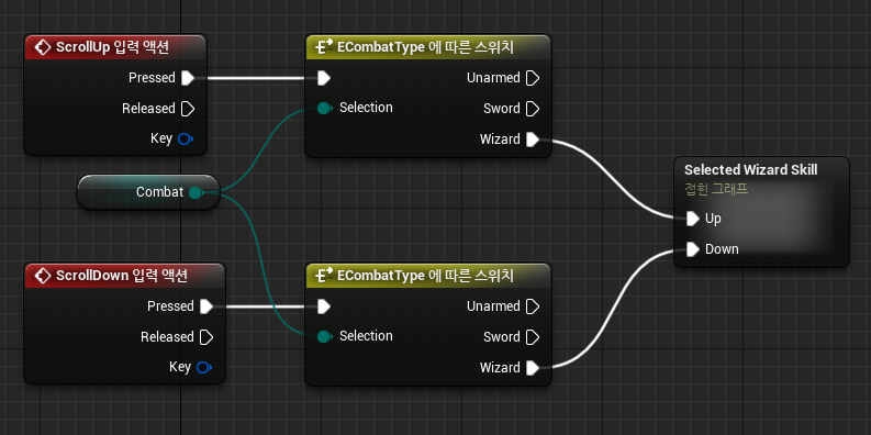 당연하게도, Combat Type이 Wizard일 때만 Scroll Up 그리고 Scroll Down 액션 이벤트를 호출하도록 해줍니다.