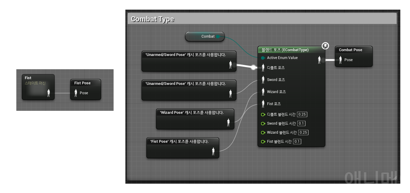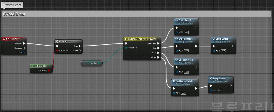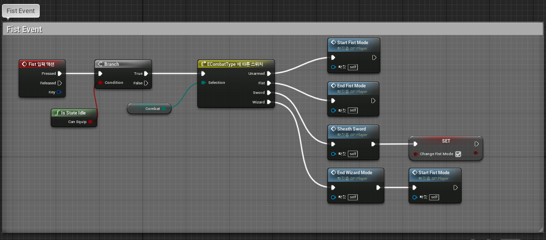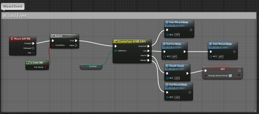 Sword 혹은 Wizard Event의 것과 다름없지만, 새로운 Combat Type이 추가된 만큼 서로 간의 전환 방식을 구현하는 Switch Node에 대한 추가 구현이 이루어져야겠죠!