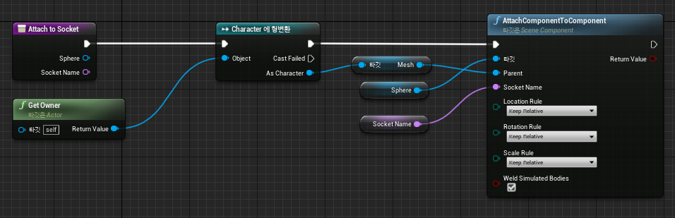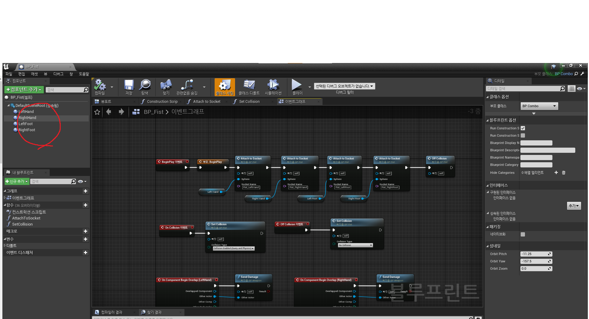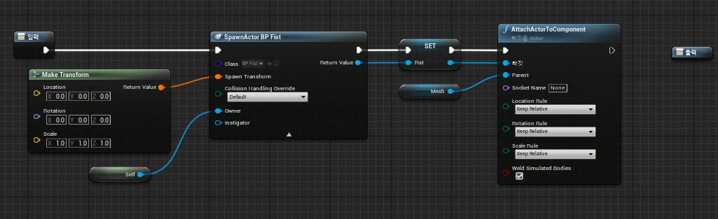 1. BeginPlay이벤트에서 Spawn & Attach Fist 노드 그룹 구현