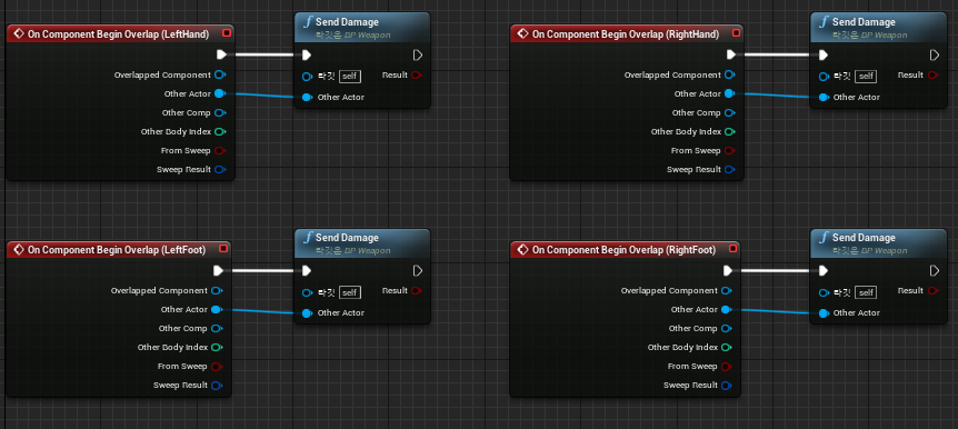 별도로 설정한 Power 값을 Damage 값으로 BP_Weapon에서 정의한 Send Damage 함수를 호출해줘야죠!