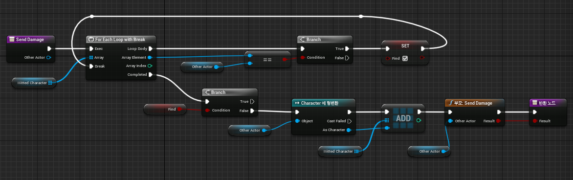- 새롭게 피격당한 Actor를 "Hitted Character" 배열에 삽입합니다.