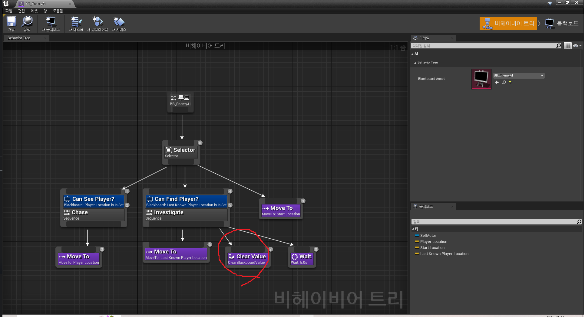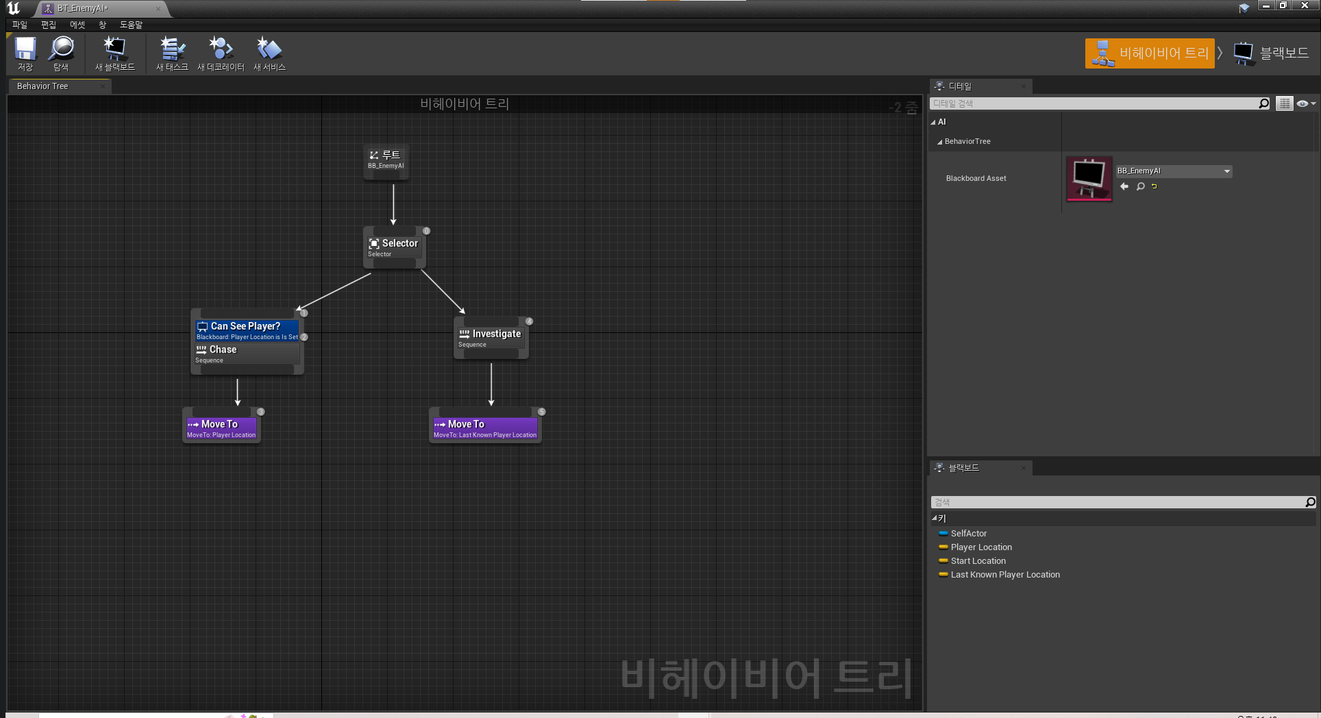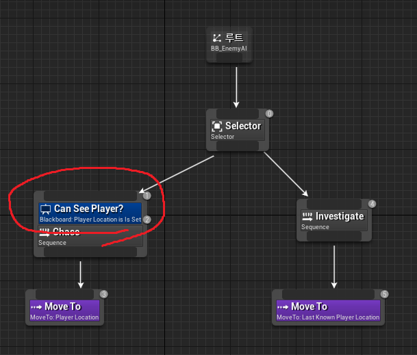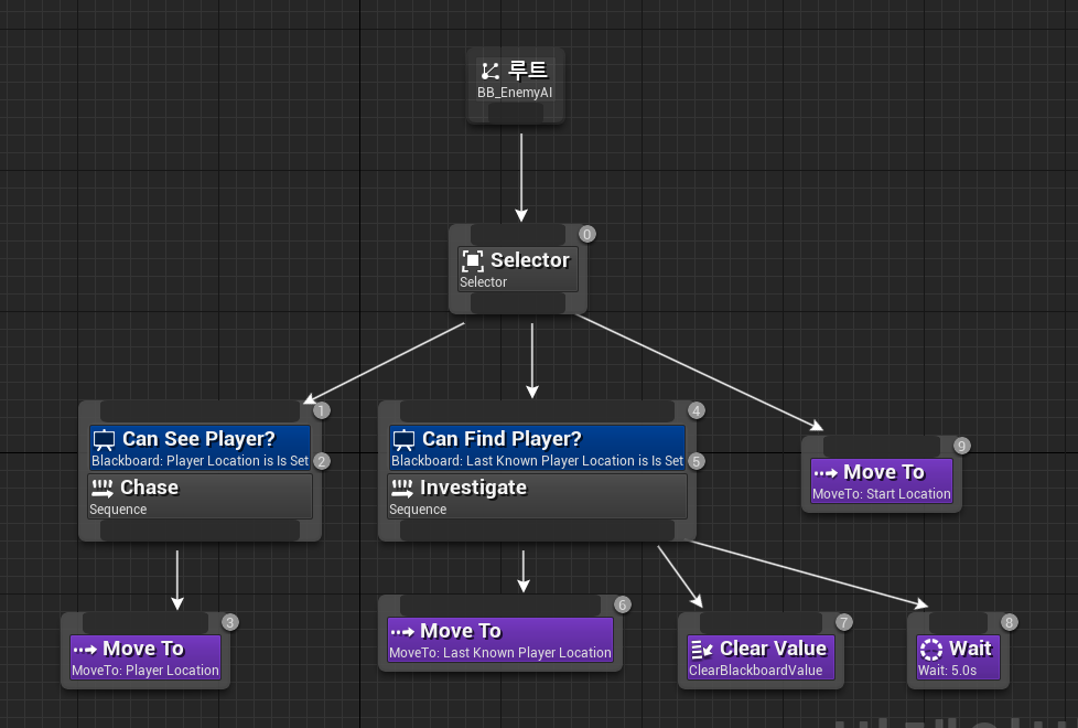 - Investigate + Can Find Player : 시야에 존재하지 않는 Player의 마지막 위치로 이동 혹은 탐색
