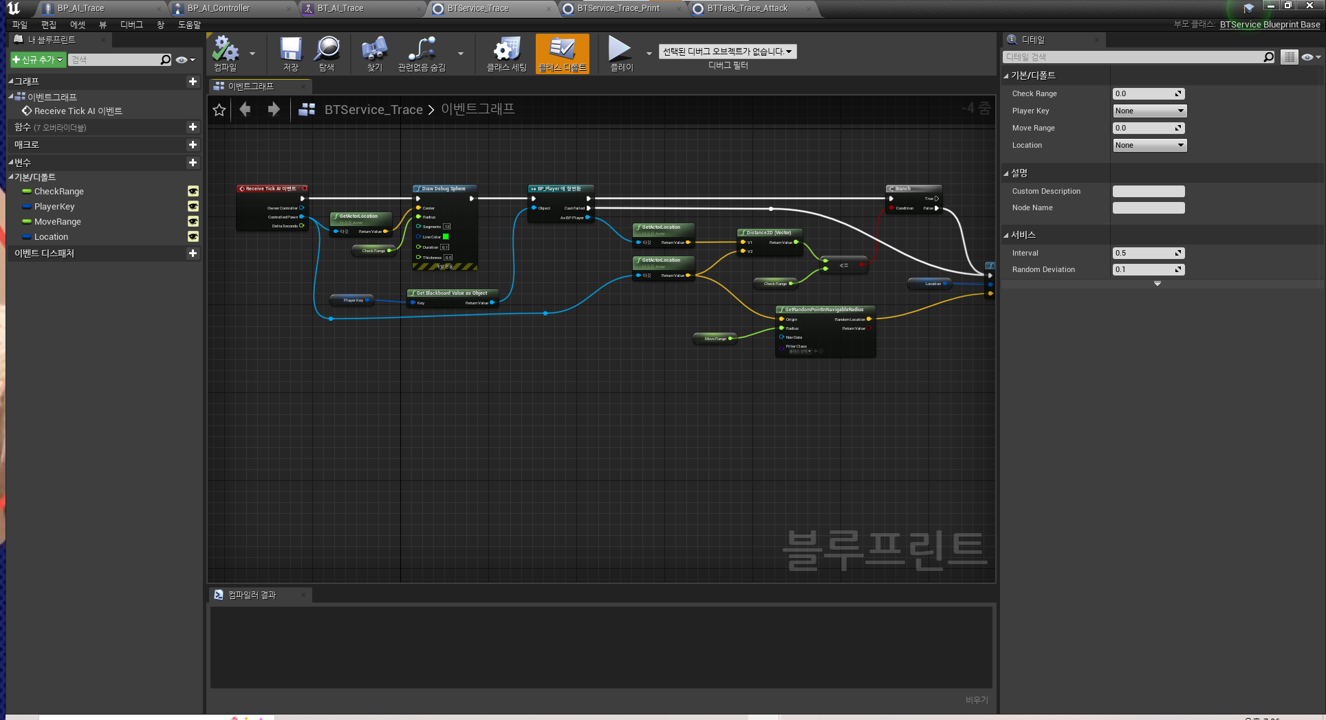 - Attack(BTTask_TraceAttack): 해당 노드 활성화 시 BTTask_TraceAttack 테스크가 활성화됩니다.