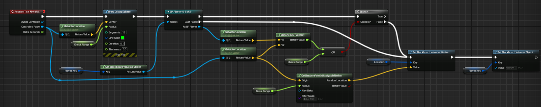 - Location -> BP_Player 객체가 인지 범위 안에 없을 시 AI가 이동할 무작위 위치