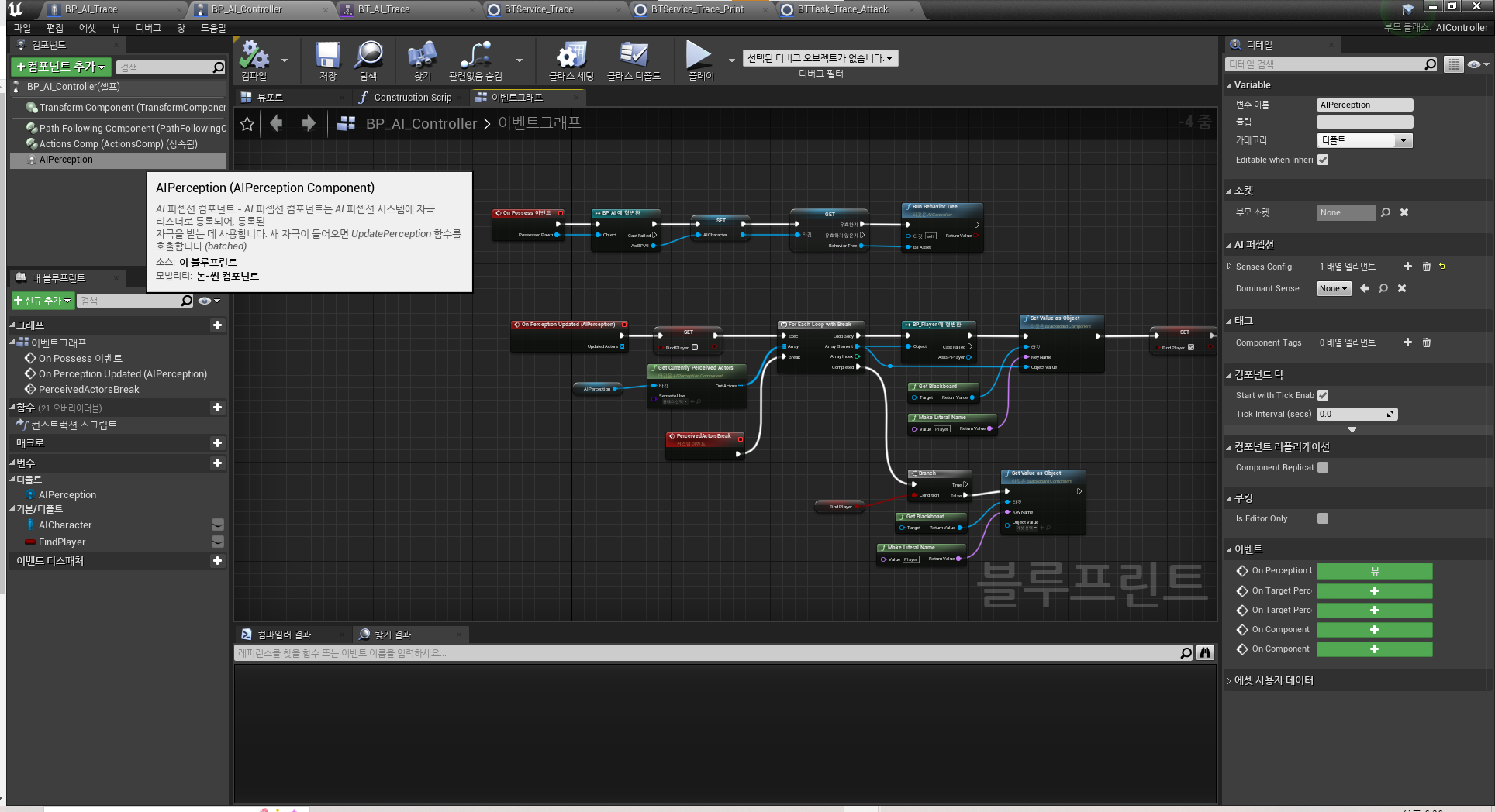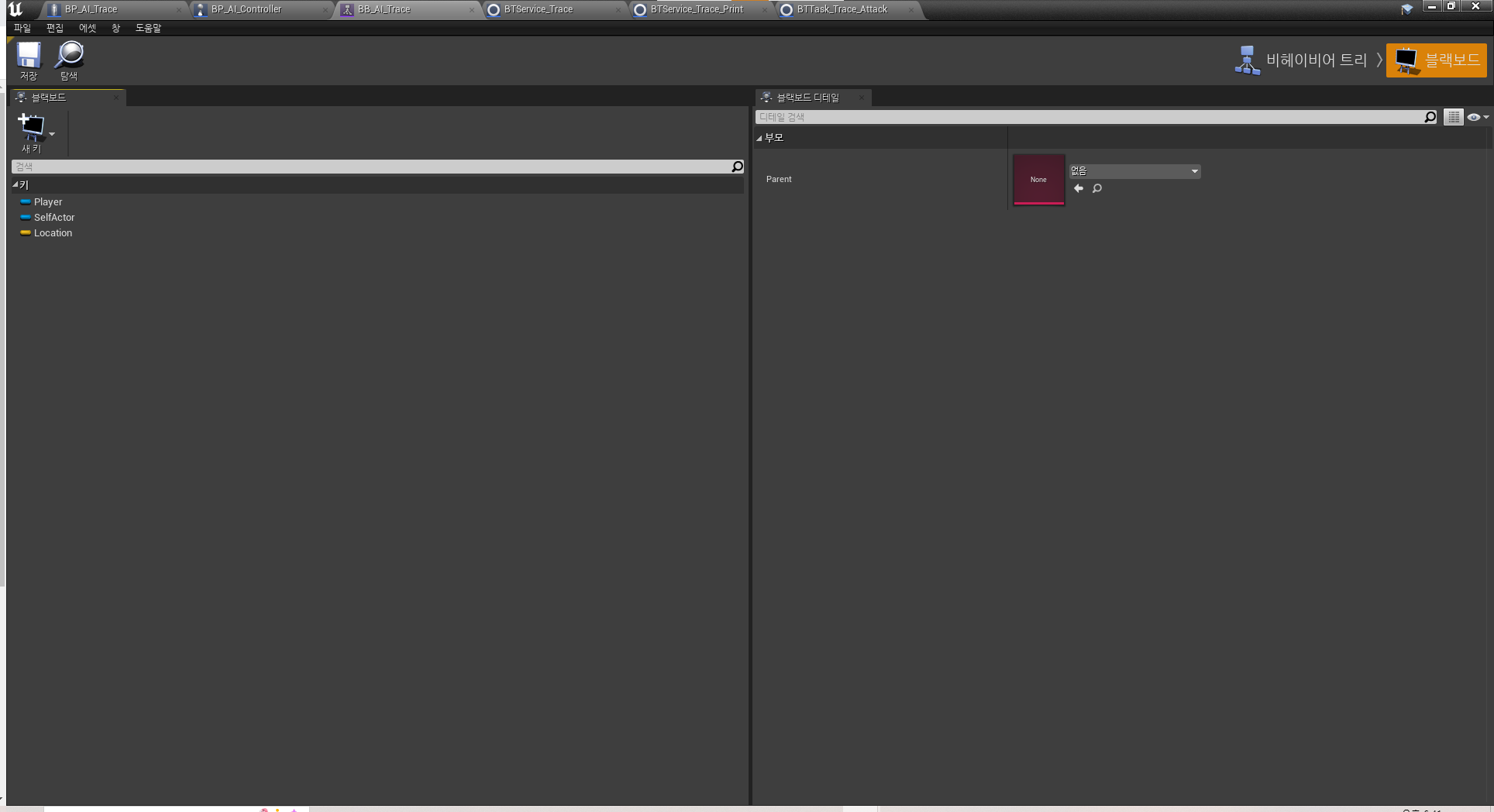 Unreal 블루프린트 개발 중 "Behavior Tree" 구현을 진행합니다.