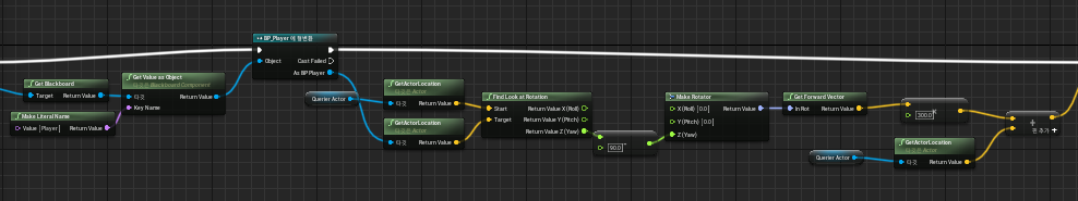 - 종합적으로, AI가 Player를 바라보는 방향을 기준으로 "왼쪽" 방향으로 특정 거리만큼 떨어진 위치를 구합니다.