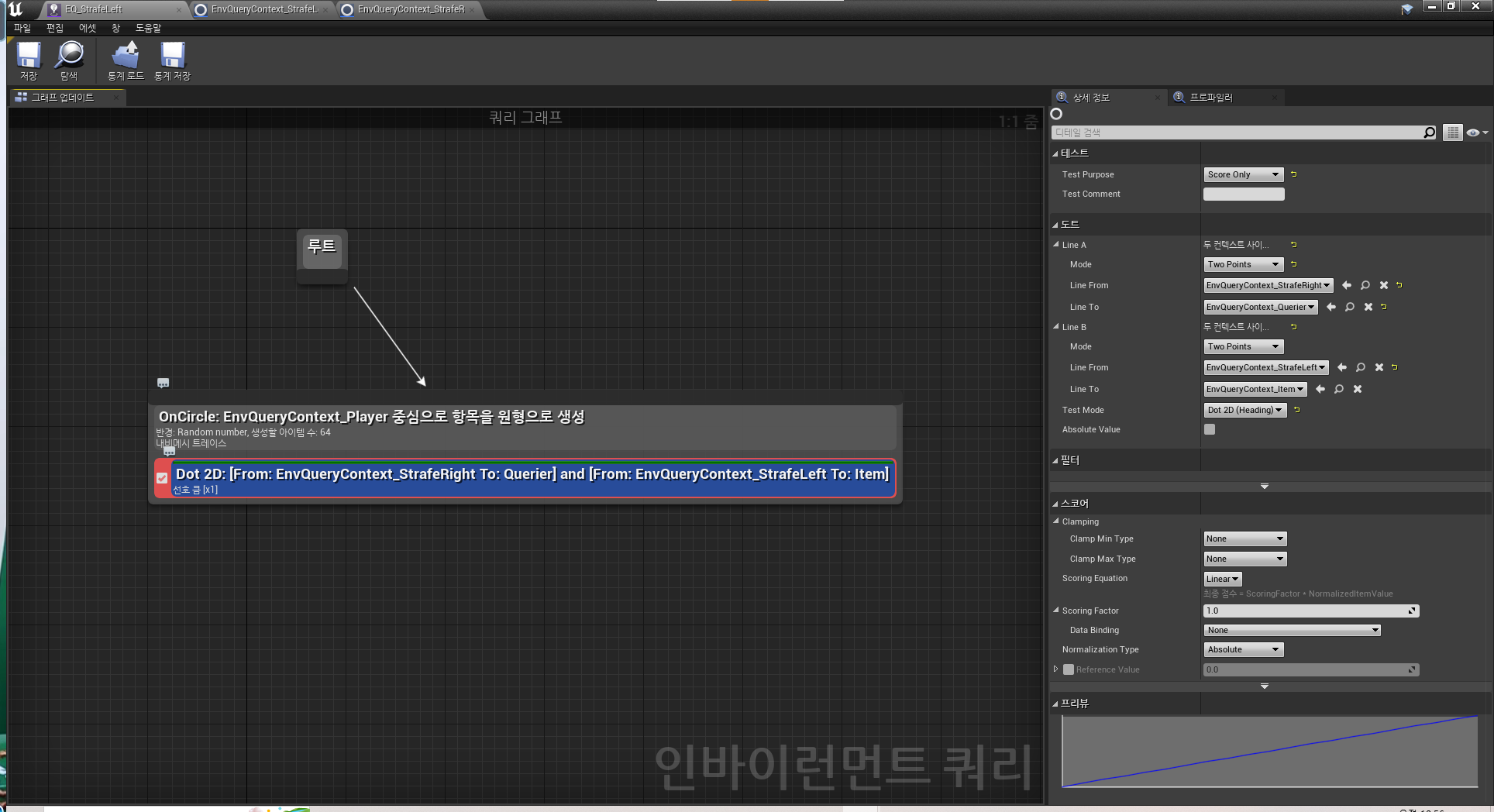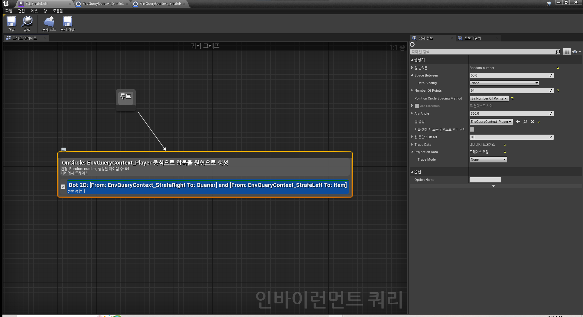 - EnvQuery_Context_StrafeLeft의 반대 방향으로 떨어진 위치를 구합니다.
