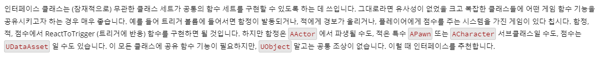 Unreal C++ 개발 중 "Interface 클래스"에 대한 내용입니다.