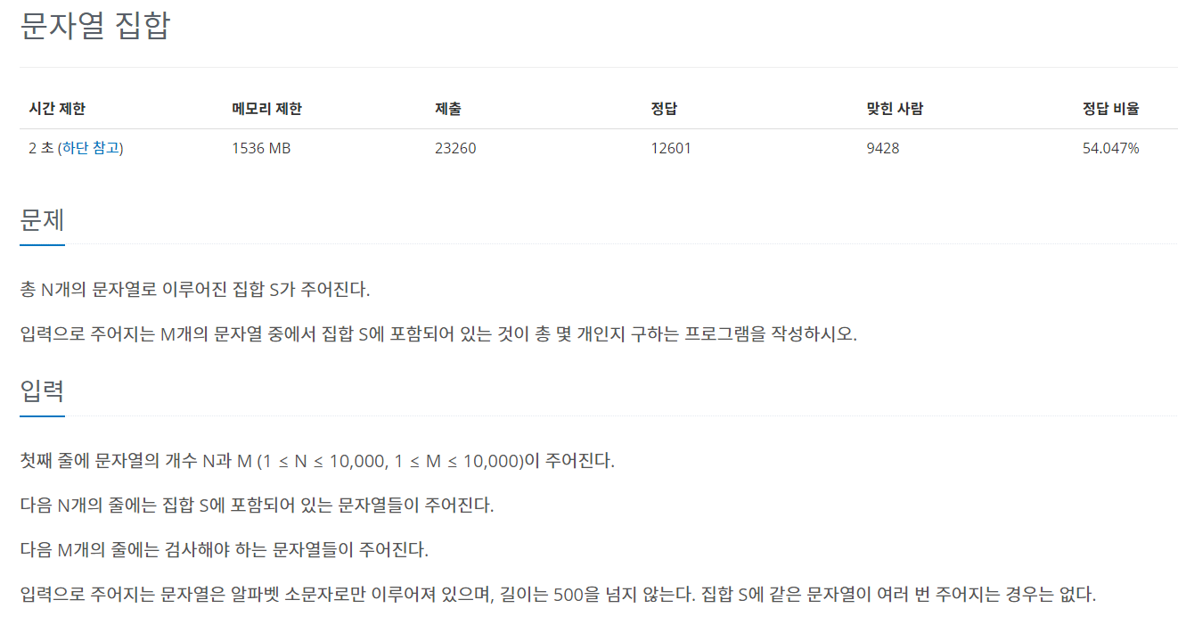 BOJ 알고리즘 문제 풀이, 14425_문자열 집합 문제