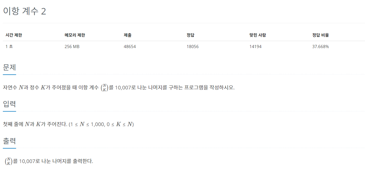 BOJ 알고리즘 문제 풀이, 11051_이항 계수 2