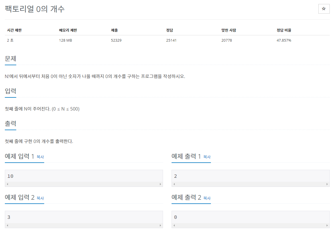 BOJ 알고리즘 문제 풀이, 1676_팩토리얼의 0의 개수