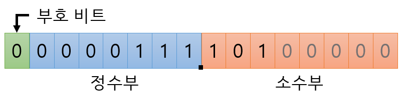 - 소수부는 점을 기준으로 순서대로 채우며, 나머지 Bit는 0으로 채워줍니다.