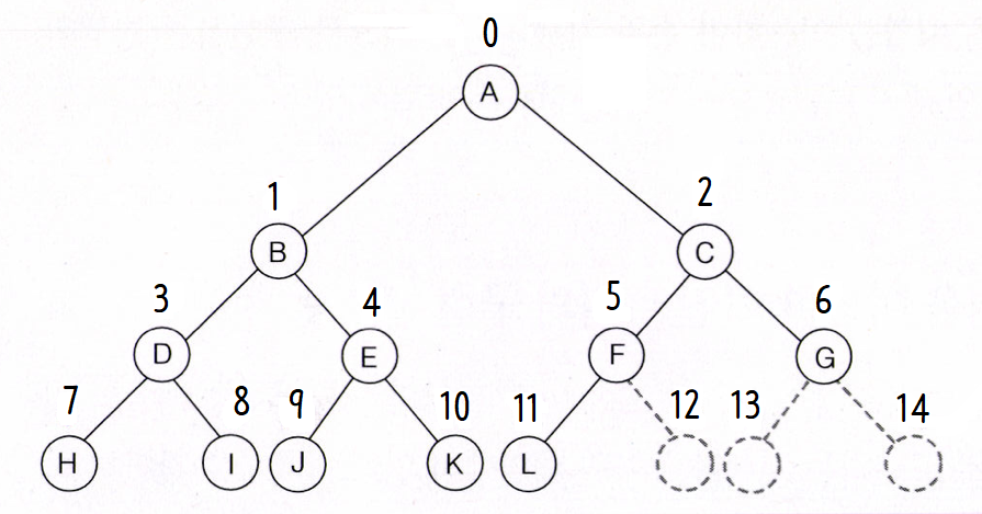 - [특징] : 총 노드 개수가 n일 때, n+1번 노드부터 2^(h+1)-1번 노드는 공백 노드로 채워집니다.