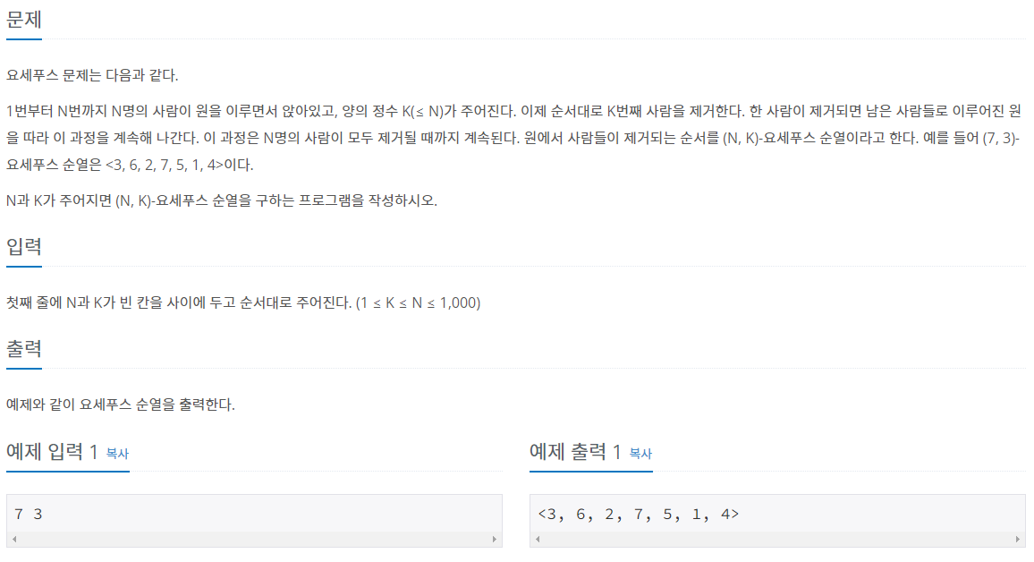 BOJ 알고리즘 문제 풀이, 11866번 요세푸스 문제 0