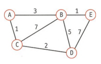4. 이어서 차례대로 D 노드, 그리고 B 노드를 방문하여 위 과정들을 반복하고, 최종적으로 E노드에 방문하는 것으로 알고리즘을 종료합니다.