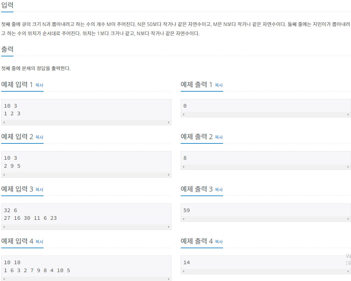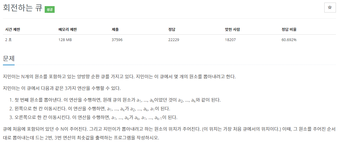 BOJ 알고리즘 문제 풀이, 1021번 문제 회전하는 큐